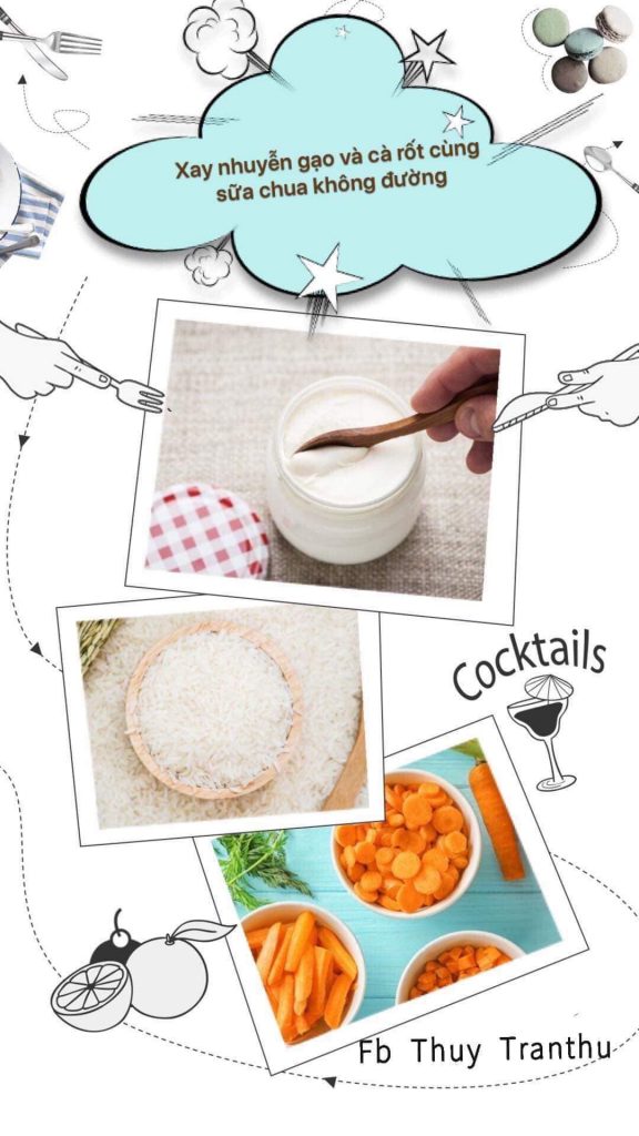Bỏ gạo và cà rốt đã nấu mềm vào xay nhuyễn cùng 1 ít sữa chua ko đường.